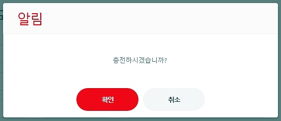 충전하시겠습니까? 메시지 창이 뜨면 확인 버튼을 눌러줍니다.