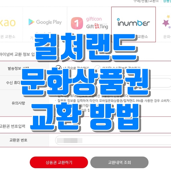 컬쳐랜드 사이트 접속 -> 상품권교환소 -> inumber 문화상품권 교환소 -> 컬쳐랜드 로그인 -> PIN번호 입력 및 충전완료