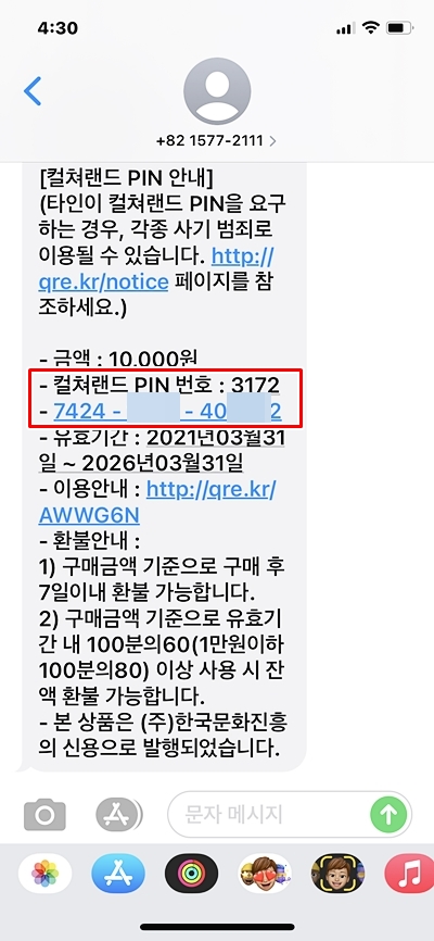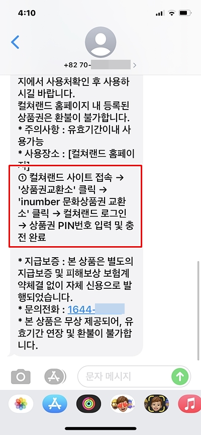제가 받은 문자의 숫자는 아이넘버 숫자이며 이 숫자를 넣어서 다시 문화상품권으로 교환하는 방식이네요.