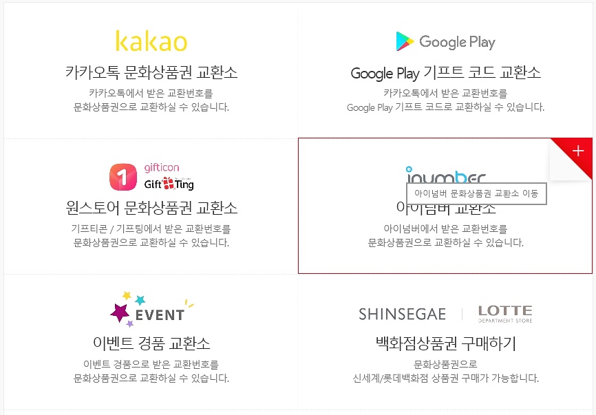 모두 9개의 교환소가 있습니다. 각각 자신이 받은 교환소를 이용하면 되겠습니다. 저는 아이넘버 교환소를 이용해야 합니다. 로그인 화면이 나오면 컬쳐랜드 아이디로 로그인해 줍니다.