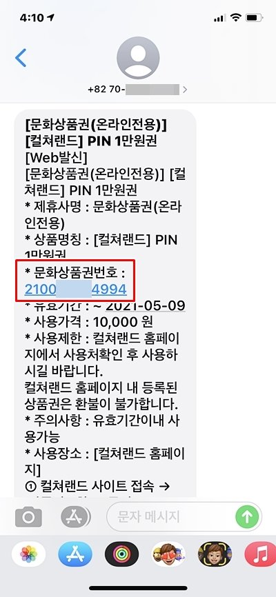 문자로 받은 컬쳐랜드 문화상품권 교환 하기