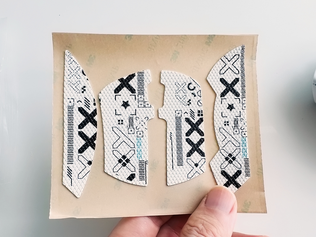 마우스 피트는 적절한 크기로 잘 배치되어 있네요. 슬라이딩이 부드러운 편이고 패드가 너무 부드럽지만 않으면 브레이킹도 원하는 대로 잘 됩니다. 마우스피트 스티커는 사진 찍고 다 제거했습니다.