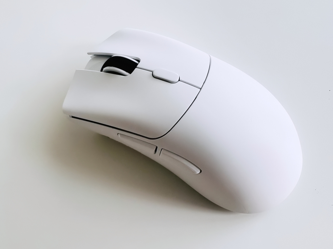 이런 이유 때문에 가성비 마우스를 구매하고 싶었고, 여기에 비대칭 디자인까지 더해져서 R1을 구매하게 되었습니다. 처음 받았을 때 박스는 좀 찌그러져서 왔지만, 마우스를 보고는 와~ 예쁘게 생겼다! 이런 감탄사가 절로 나왔습니다. 뽀송뽀송한 코팅 느낌도 좋고 전체적인 실루엣이 정말 잘 빠졌습니다. 여기에 조립 완성도는 전혀 불만이 없을 정도로 높은 편입니다.