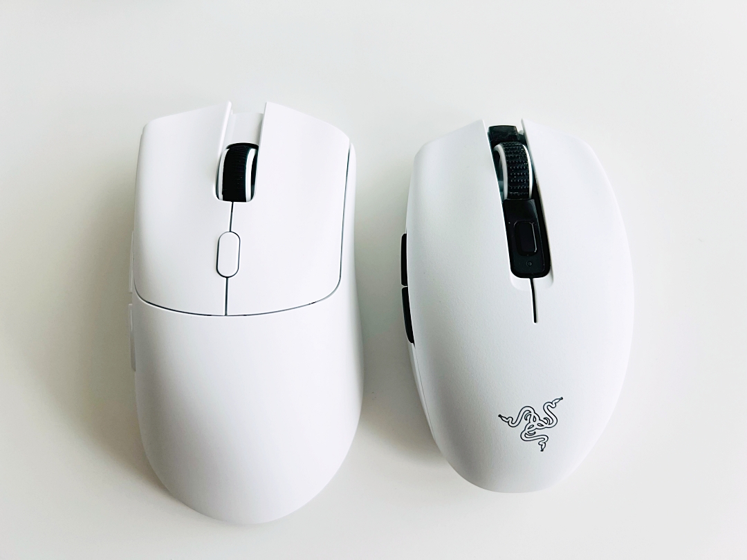 쉘은 레이저사의 데브삼(데스에더 V3 Pro) 카피라는 말이 많은데요, 크기는 데브삼보다 작습니다. 데브삼이 손에 맞는 분이라면 조금 작게 손에 들어온다고 보면 되겠습니다.