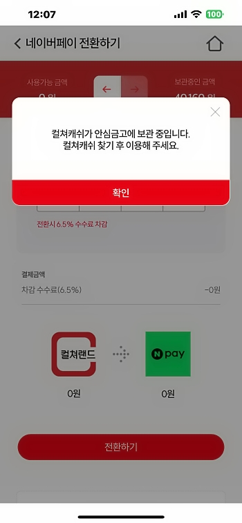 단지 모바일상품권을 컬쳐캐시로 충전 > 이걸 다시 네이버페이로 전환