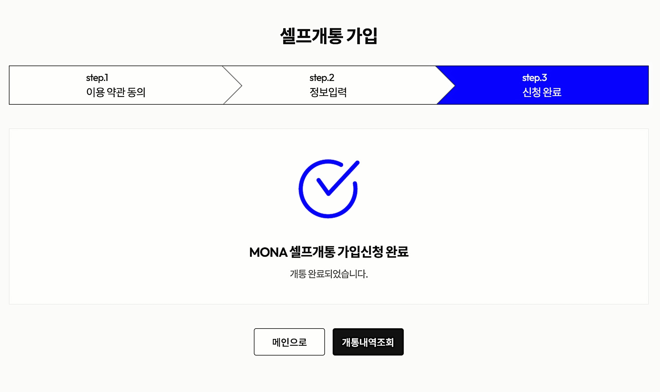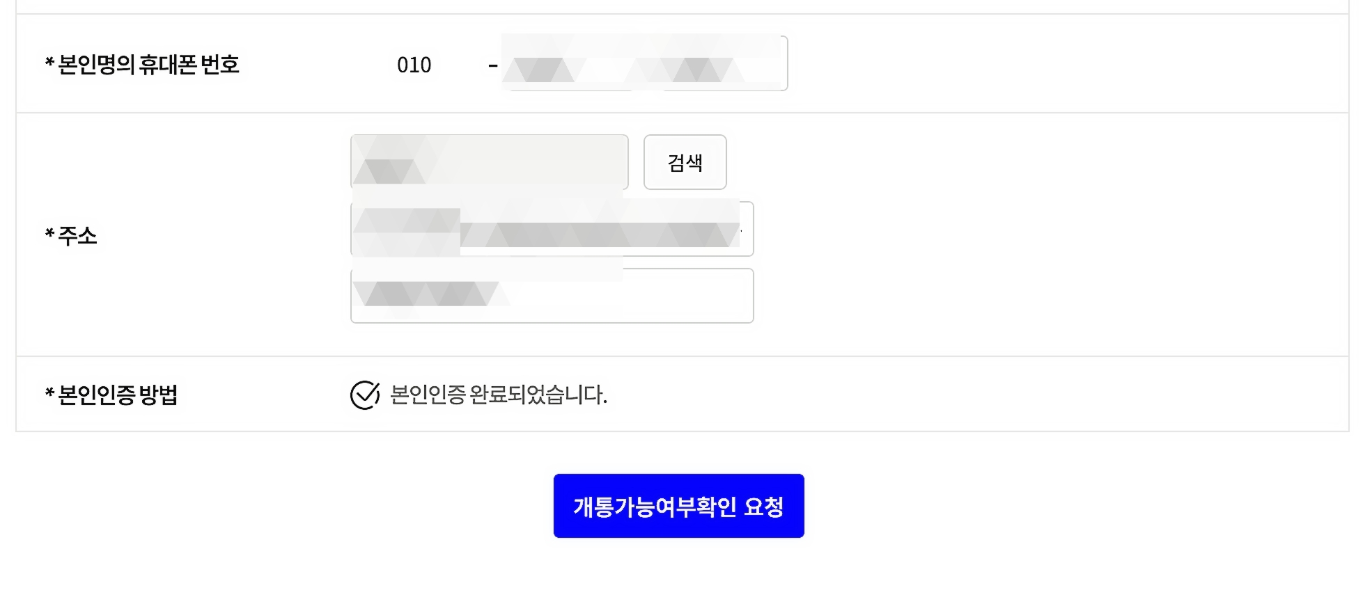 모든 입력이 끝났다면 개통하기 버튼을 눌러줍니다.