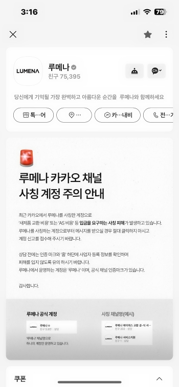 요즘 사칭 계정이 있다고 하니까 친구 7.5만으로 되어 있는 루메나인지 꼭 확인하고 추가하세요.