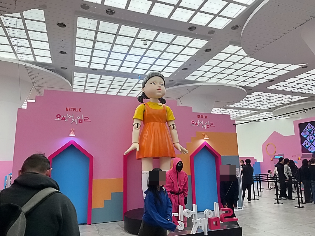 처음 들어가면 입구에서부터 대형 영희 인형이 맞이해 줍니다. 오징어게임 시즌1에서도 맹활약(?)을 했었는데, 시즌2에도 나오나보네요. 사실 저는 아직 오징어게임 2를 안 봤어요.